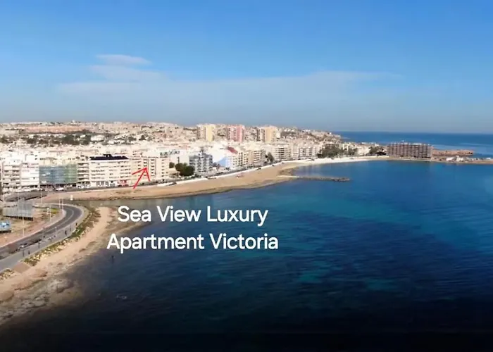 Oferujący Gościom transfer lotniskowy, Sea View Luxury Apartment Victoria Torrevieja o powierzchni 90 m^2 znajduje się 45 km od lotniska Alicante. Park Wodny Flamingo jest około 10 min jazdy autem, a Playa El Salaret jest mniej niż 300 m od apartamentu.